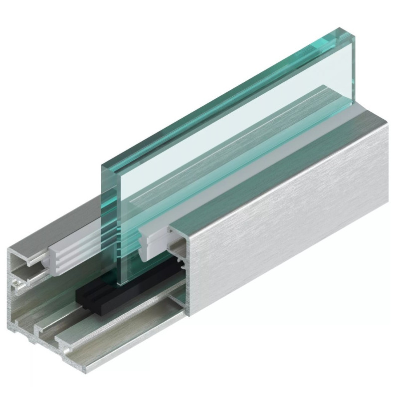 Montážní lišta je ideální pro skleněné konstrukce, jako jsou příčky, vitríny nebo kabiny, a zaručuje stabilitu a estetické provedení konstrukce.
