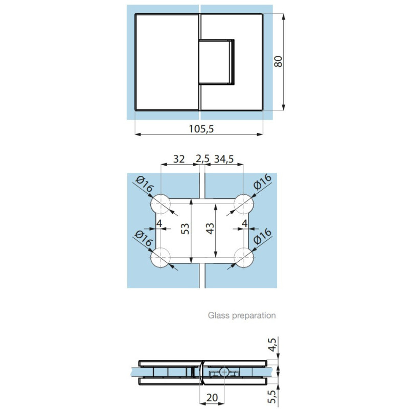Ideální pro instalaci skleněných dveří v koupelnách, vanových prostorách nebo lázních.