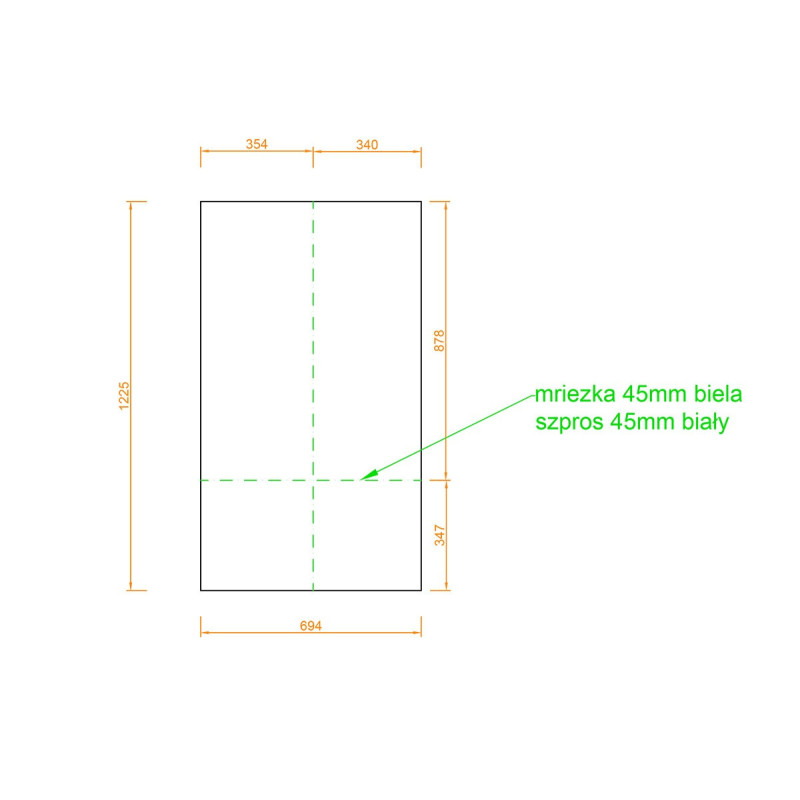 Rozmery: 694 × 1225 mm Distančná lišta: biela, šírka 45 mm