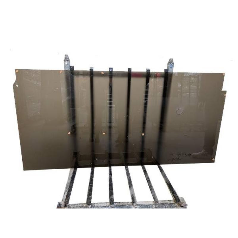 Na predaj: ESG Decormat 10 mm hnedé tvrdené sklo, leštený povrch, otvory, výrezy, škrabance na skle viditeľné na fotografii – označené fixkou.