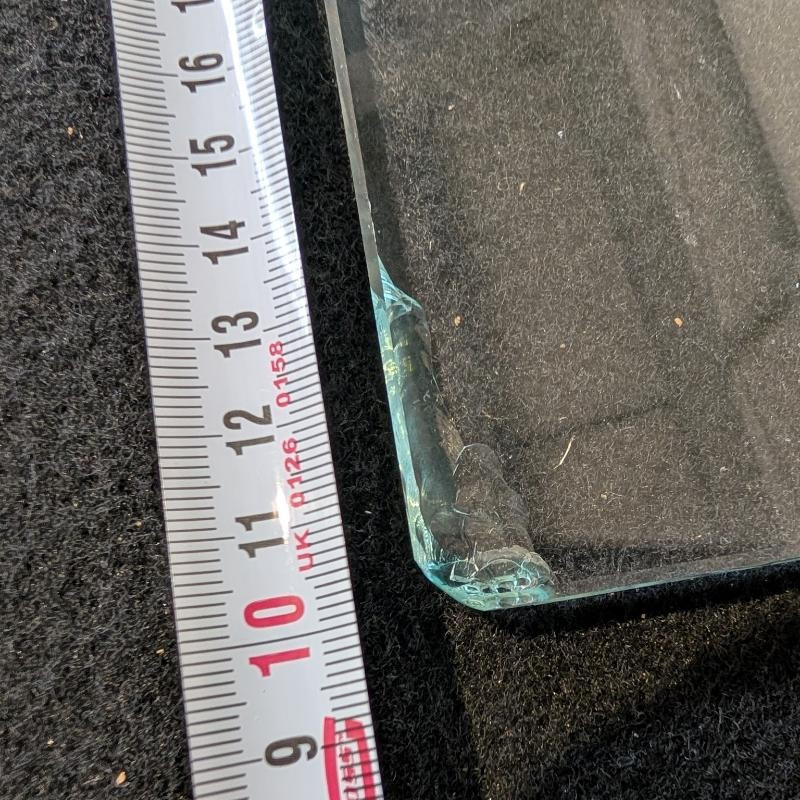 Na predaj Sklo ESG Optiwhite 8 mm mm - 335x327mm – pripravené na inštaláciu, odlomený roh