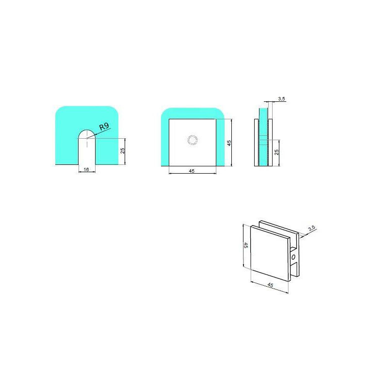 ÚCHYT PEVNÝ stena-sklo sklo 6-12 mm, koniec rovný, mosadz, elox čierný matný