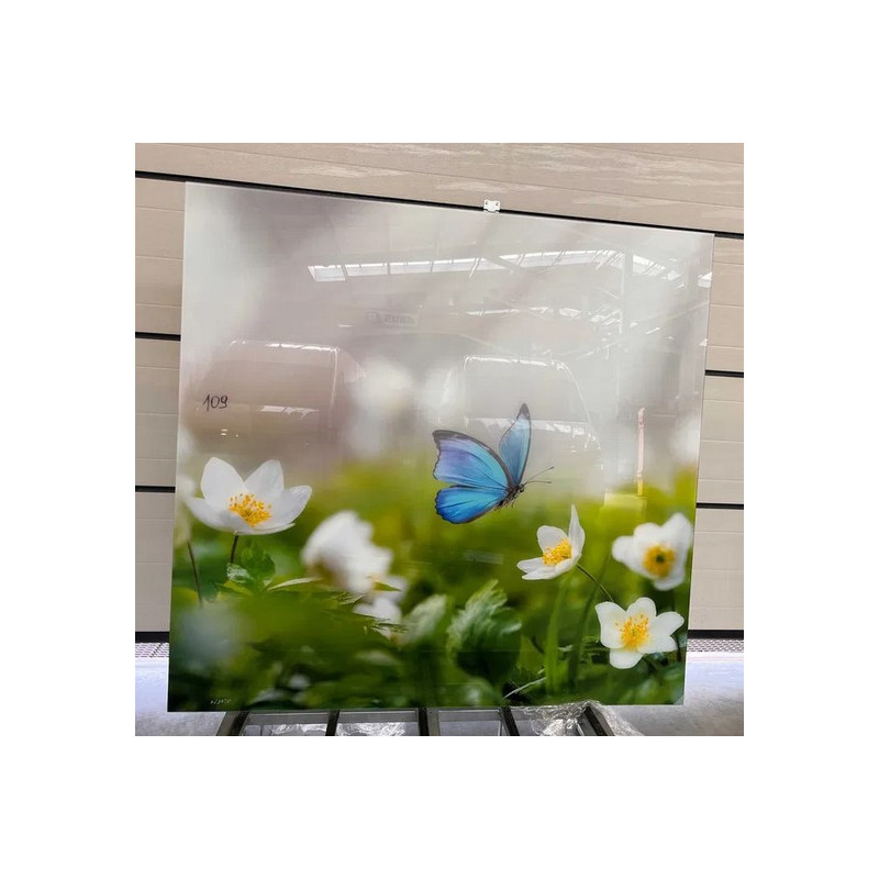 Na predaj ponúkame 6 mm tvrdené sklo Optiwhite s dekoratívnou grafikou motýľa - ideálne ako originálny interiérový doplnok. Tabuľa má leštené, brúsené hrany, nie sú na nej žiadne značky kalenia a jej stav je bezchybný - bez poškodenia. Skvelý ako nástenný panel alebo dekoratívna grafika do moderných aj klasických interiérov.