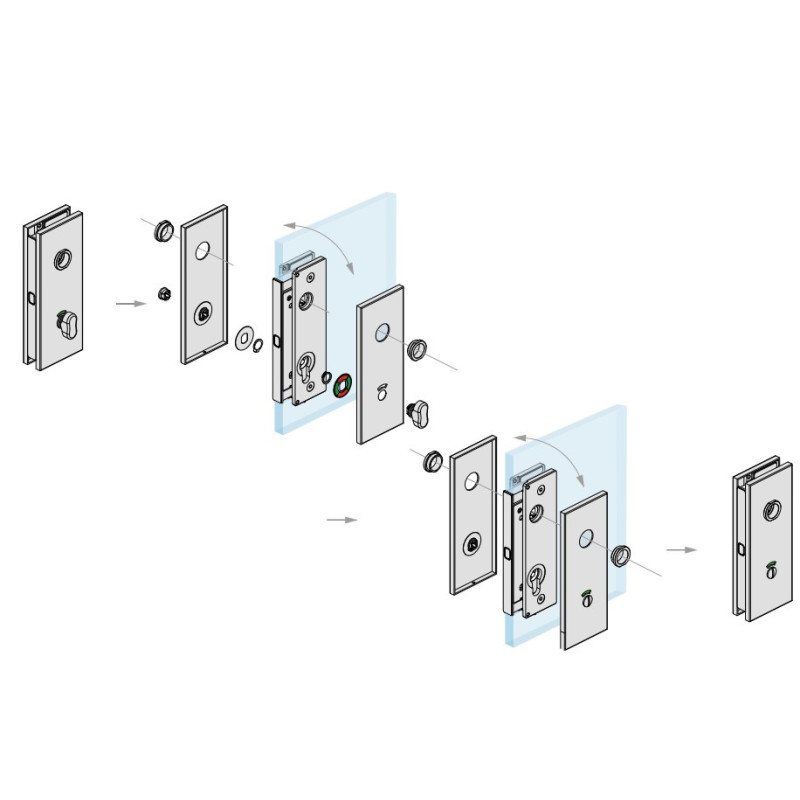 Zámok TGMVLI10S možno namontovať na dvere otvárané dovnútra aj von pootočením mechanizmu zámku.